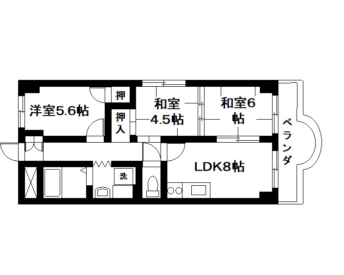 LDK8畳 洋室5.6畳 和室4.5畳 和室6畳 3LDK |